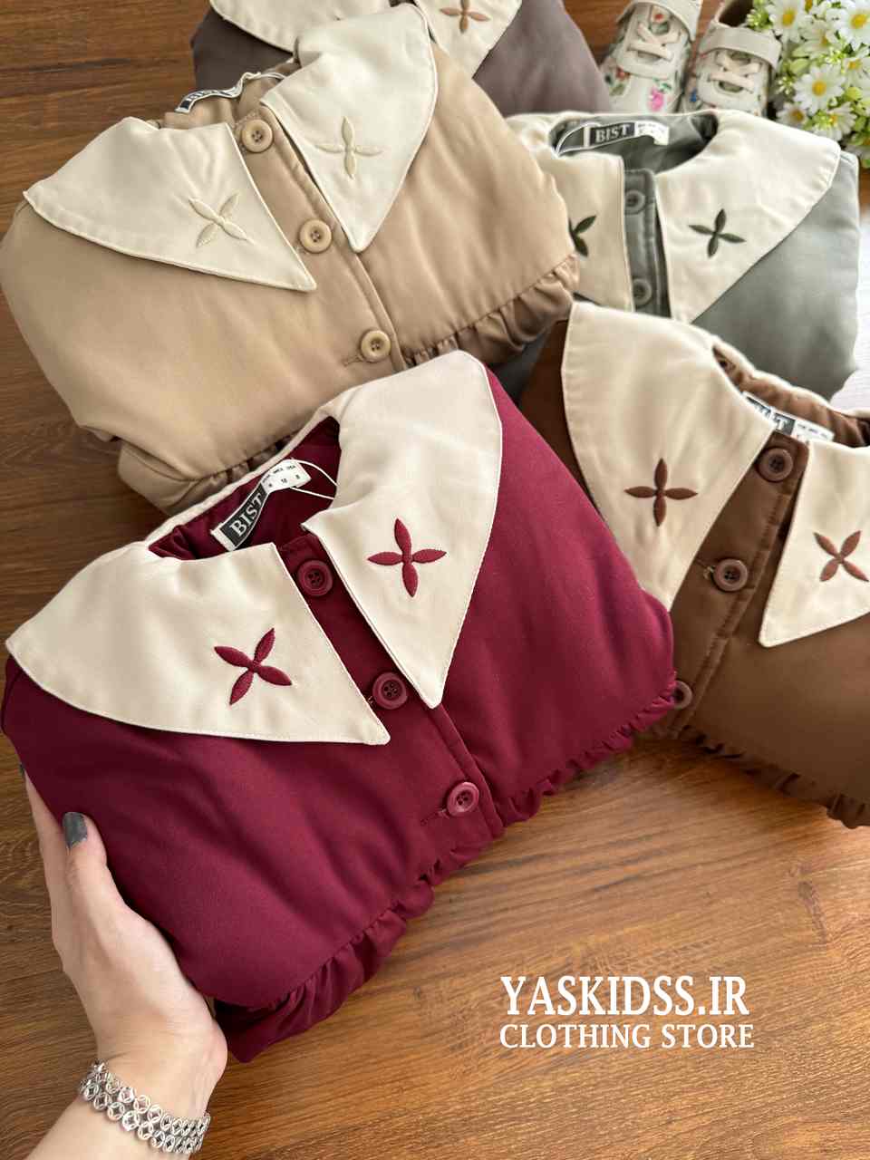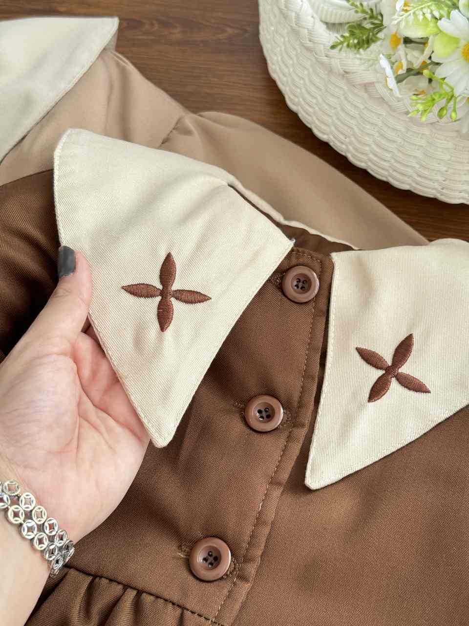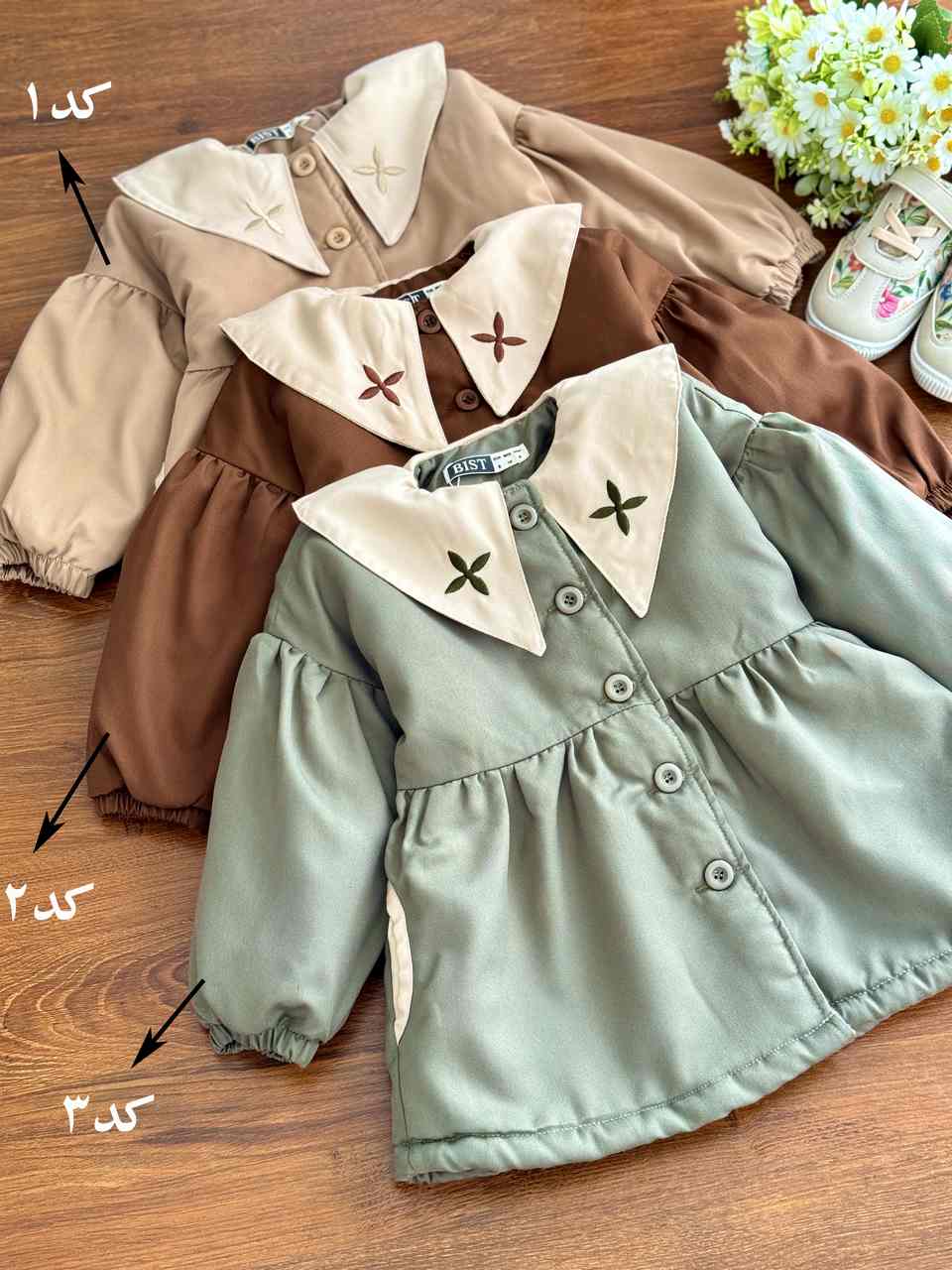 - جلو دکمه، جیبدار، کمر دار